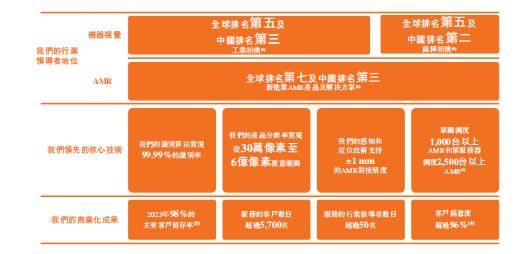 根据弗若斯特沙利文数据,按2024年销售收入计算,华睿科技在工业相机领域全球排名第五、中国排名第三,面阵相机全球排名第五、中国排名第二;在制造业AMR产品及解决方案领域全球排名第七、中国排名第三,展现出强劲的市场竞争力。