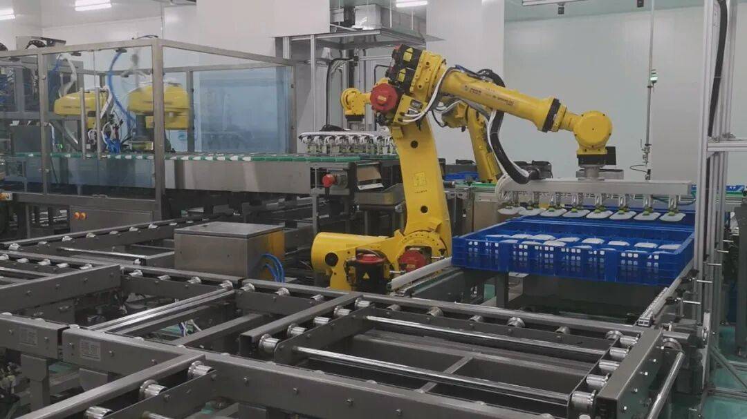 2.机器人应用。采用多台协作机器人组成智能集群,实现低温环境下的7×24小时连续作业;集成视觉引导系统(识别精度0.05mm)与自适应抓取算法,完全替代人工完成卸载、分拣、装载等高危操作,实现单机器人可处理血浆袋2000袋/小时,较传统人工效率更高更精准,且实现零接触操作。