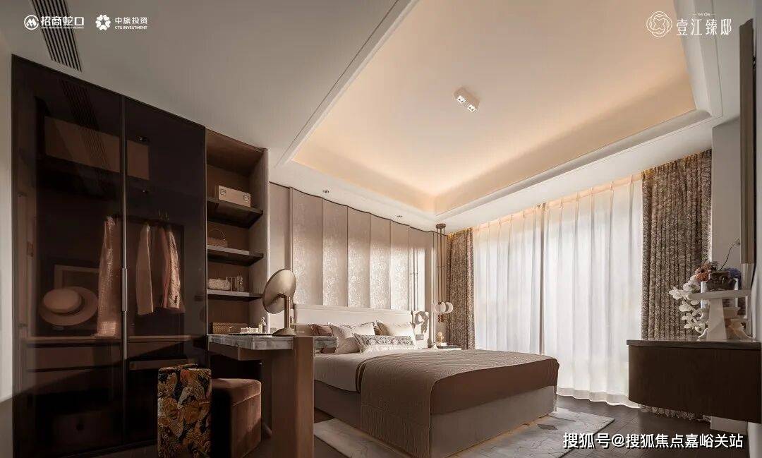 主卧套房的设计同样突破想象。整体面积约25㎡,更是在约270°转角飘窗的基础上,增设靠窗休闲沙发区,形成独立的“微型休憩系统”。